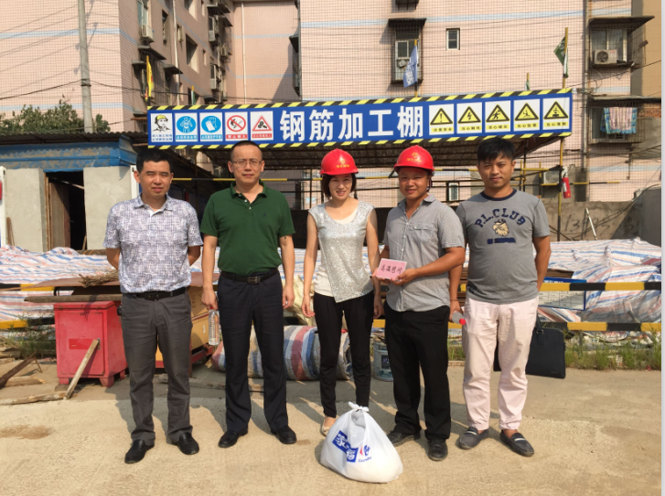 盛夏時(shí)節(jié),武漢連日來驕陽似火,高溫酷熱,但是博宏建設(shè)項(xiàng)目部一線員工不畏困難,戰(zhàn)高溫、斗酷暑,依舊奮戰(zhàn)在項(xiàng)目前線,為實(shí)現(xiàn)公司全年目標(biāo)而奮力拼搏。825日,博宏公司開展高溫慰問活動(dòng),黨支部書記周紅、副經(jīng)理秦林、工會(huì)主席李俊以及各職能部門負(fù)責(zé)人等深入項(xiàng)目一線,看望、慰問奮戰(zhàn)在高溫一線的廣大職工,為他們送去了綠豆、白糖、防暑藥品等,為一線職工們帶來了絲絲“清涼”。