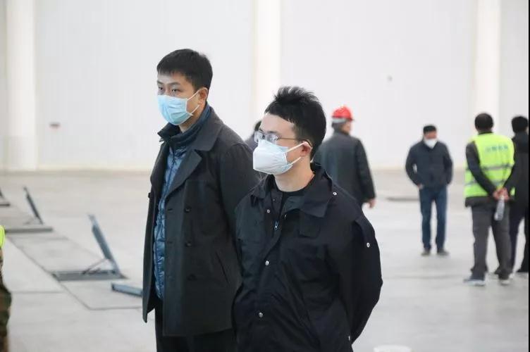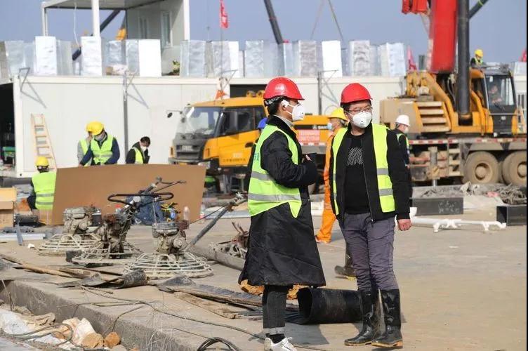 張光(右)在“火神山”項(xiàng)目現(xiàn)場協(xié)調(diào)施工