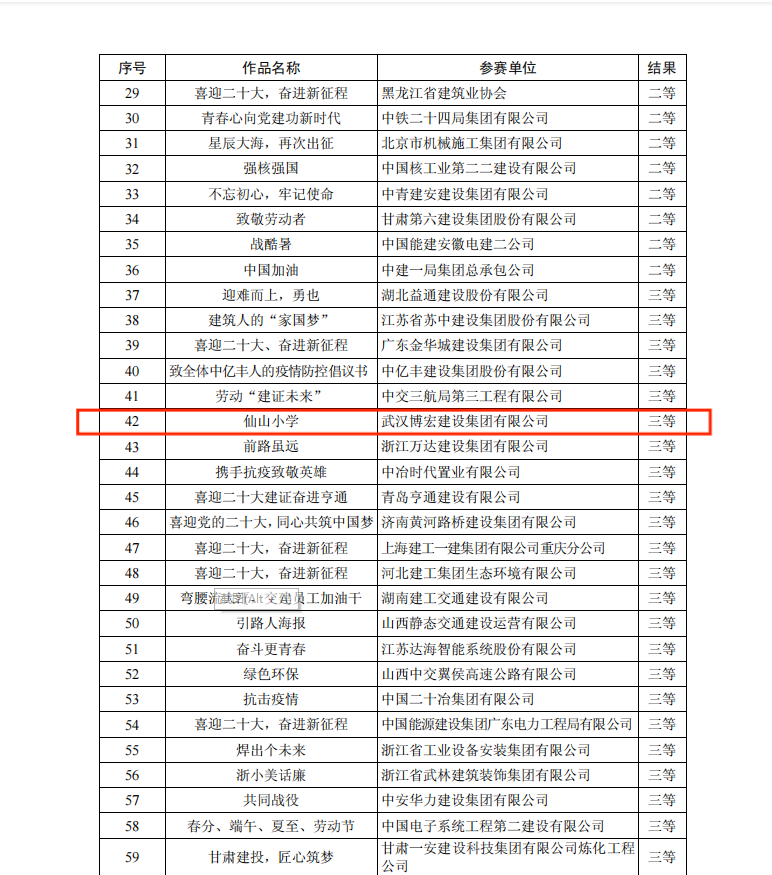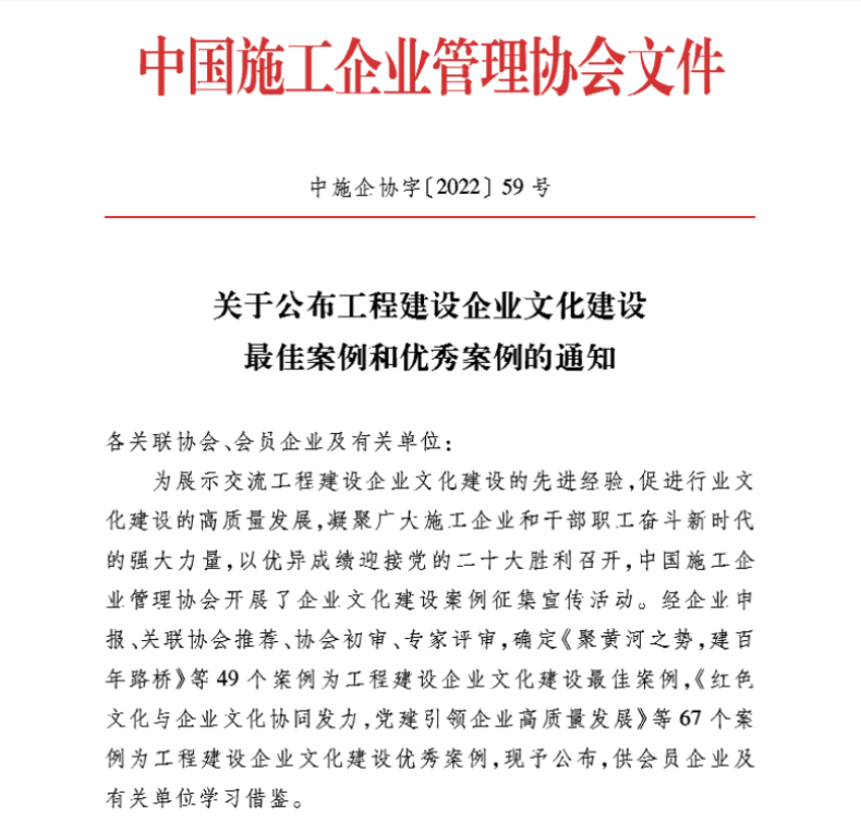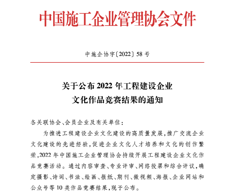近日,中國施工企業(yè)管理協(xié)會(huì)發(fā)布“關(guān)于公布工程建設(shè)企業(yè)文化建設(shè)最佳案例和優(yōu)秀案例的通知”和“關(guān)于公布2022年工程建設(shè)企業(yè)文化作品競賽結(jié)果的通知”,經(jīng)過內(nèi)容審查、專業(yè)評(píng)審等環(huán)節(jié),博宏建設(shè)集團(tuán)《創(chuàng)新企業(yè)文化建設(shè) 凝聚企業(yè)發(fā)展新動(dòng)能》案例獲評(píng)工程建設(shè)企業(yè)文化建設(shè)優(yōu)秀案例;仙山小學(xué)海報(bào)獲評(píng)海報(bào)作品競賽單元三等獎(jiǎng)。