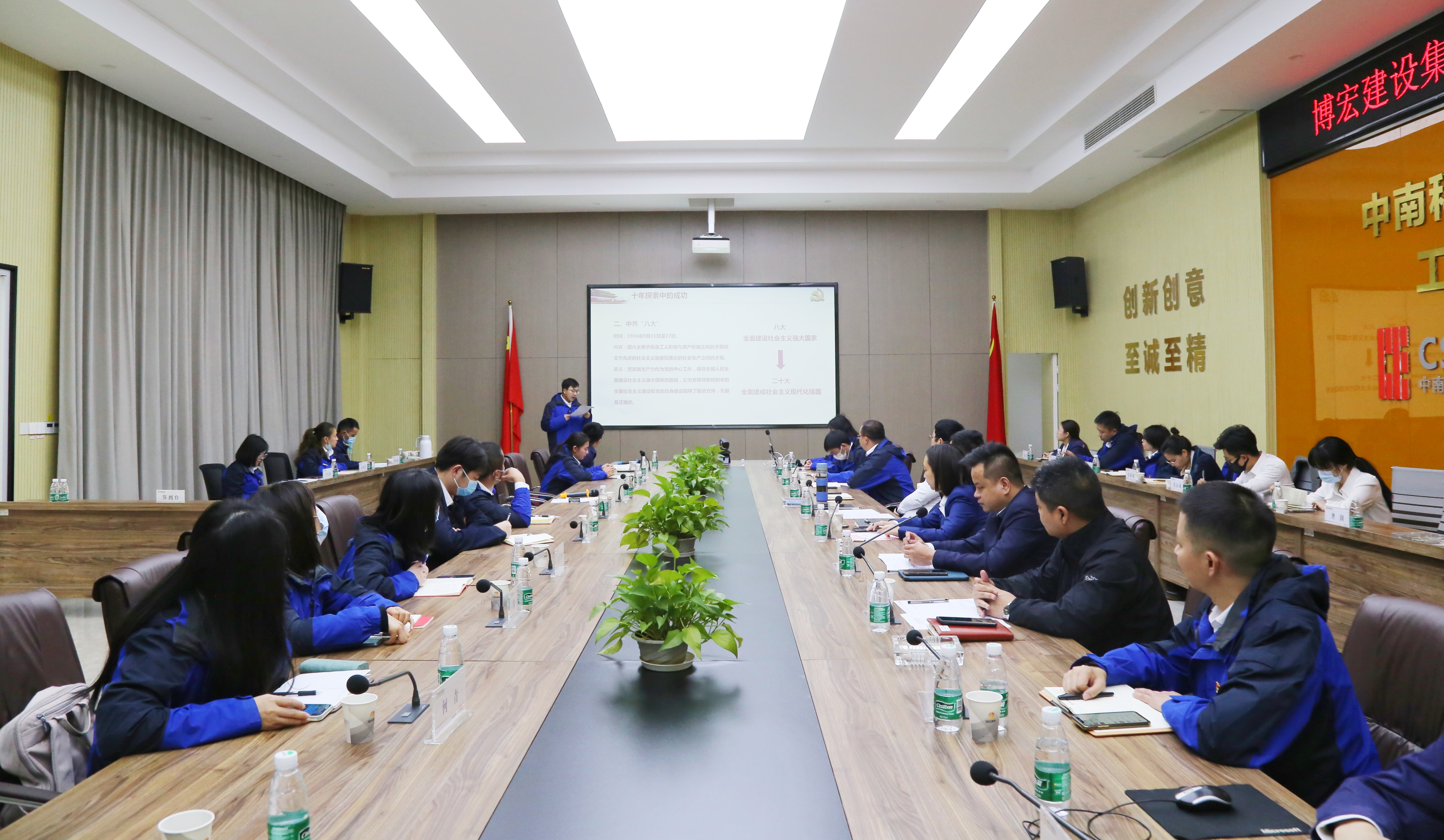 為深入學(xué)習(xí)貫徹黨的二十大精神,博宏建設(shè)集團(tuán)第一黨支部、第二黨支部分別于公司會議室及中南科研設(shè)計中心項目會議室舉辦了主題為“奮進(jìn)新征程,聚力再起航”的11月主題黨日活動,全體黨員參會。