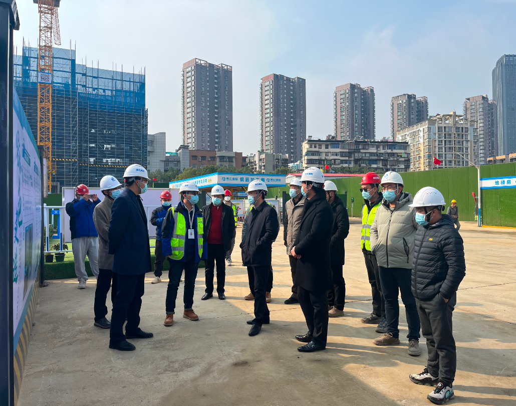 湖北省建設科技與建筑節(jié)能辦公室主任董文斌一行蒞臨天創(chuàng)覽江府項目現(xiàn)場考察調研