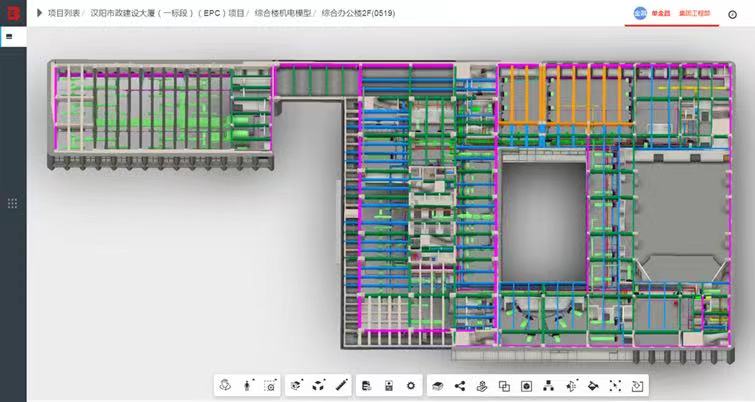 研究生期間彭迎研究的方向是BIM技術(shù)土建方向,但工作需要盡快上手的是BIM技術(shù)機(jī)電方向,一時(shí)讓她有點(diǎn)手足無措,“有問題先嘗試解決,辦法總比困難多”踏實(shí)肯干的她選擇了迎難而上,白天她跟著師傅們不厭其煩地穿梭于現(xiàn)場的各個(gè)樓棟,在工作過程中多看、多問、多記、多學(xué),晚上回到宿舍,她通過閱讀大量BIM機(jī)電方向相關(guān)書籍以及上網(wǎng)課等方式自學(xué)相關(guān)知識(shí),有時(shí)為了弄懂一個(gè)問題常常奮戰(zhàn)到深夜。從入門到逐漸架構(gòu)起整個(gè)知識(shí)體系,彭迎經(jīng)歷了半年的時(shí)間。在自學(xué)期間,她遇到了很多困難和瓶頸,但因?yàn)闊釔郏瑥奈聪脒^放棄。“那段時(shí)間很累但是也很充實(shí),每天都能學(xué)習(xí)到新的東西,讓我對(duì)機(jī)電的了解越來越深入,也越發(fā)體會(huì)到了BIM的魅力??粗约豪L制的BIM圖紙粘貼在了施工墻上,工人按照?qǐng)D紙可以搭建出符合標(biāo)準(zhǔn)的砌體,心中的喜悅是無法用語言描述的。”回憶起那段時(shí)光時(shí),她臉上總是帶著微笑。理論上的認(rèn)真鉆研,現(xiàn)場中的建模實(shí)踐,彭迎的專業(yè)技術(shù)在不懈努力中愈見純熟,在負(fù)責(zé)總部大樓地上部分機(jī)電BIM工作過程中考取了BIM二級(jí)設(shè)備證,也和同事們一起獲得了多項(xiàng)國家級(jí)、省市級(jí)BIM獎(jiǎng)項(xiàng),熱愛與進(jìn)取讓她一次次品嘗到了成功的碩果。