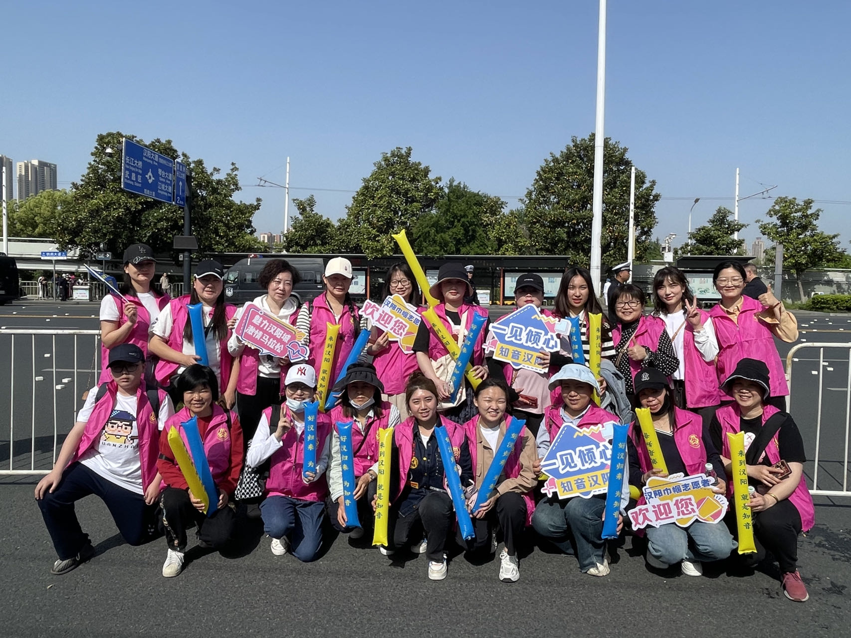 彭迎(第二排右一)參加武漢馬拉松志愿服務(wù)活動(dòng)