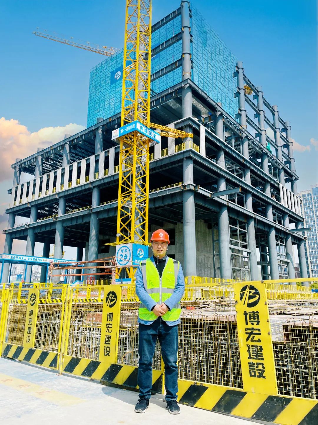 對(duì)外溝通協(xié)調(diào)與項(xiàng)目施工部署也是楊云華重要的工作之一。中南科研設(shè)計(jì)中心項(xiàng)目是博宏建設(shè)與中南建筑設(shè)計(jì)院共同承建的EPC工程,不同的企業(yè)文化造就了不同的處事方式,若彼此不能很好地融合,勢必給項(xiàng)目的實(shí)施帶來不少阻力。每個(gè)人都有自己的處事風(fēng)格,為了解決項(xiàng)目問題,如何得到大家的理解與支持,針對(duì)不同的風(fēng)格采取怎樣的溝通方式,楊云華不斷換位思考,并常常在休息時(shí)間以“思考+鍛煉”的模式,反復(fù)將溝通情況在腦海中進(jìn)行復(fù)盤,爭取最大程度優(yōu)化溝通結(jié)果。2022年楊云華牽頭開展了漢陽區(qū)安全月啟動(dòng)儀式暨現(xiàn)場觀摩會(huì),主、副樓封頂儀式等各類觀摩、檢查活動(dòng)。
