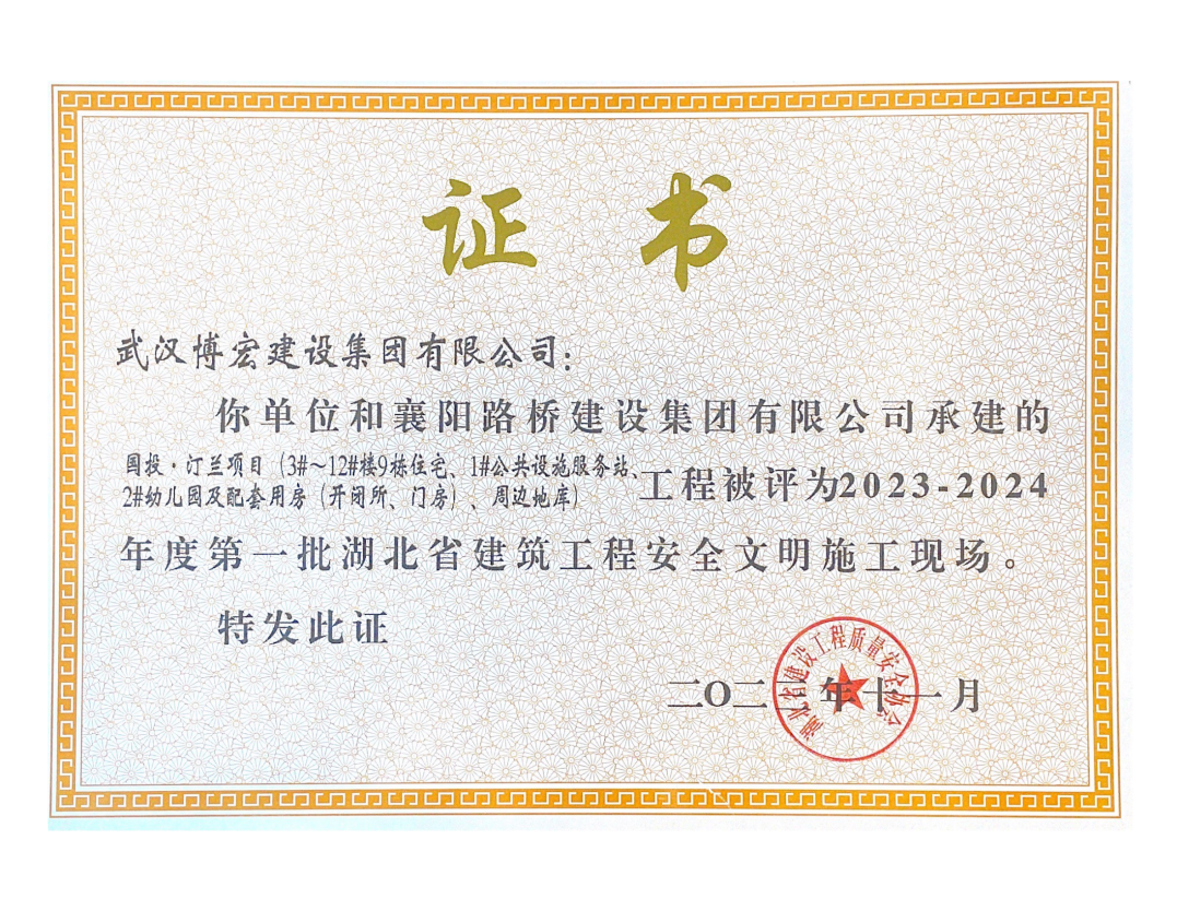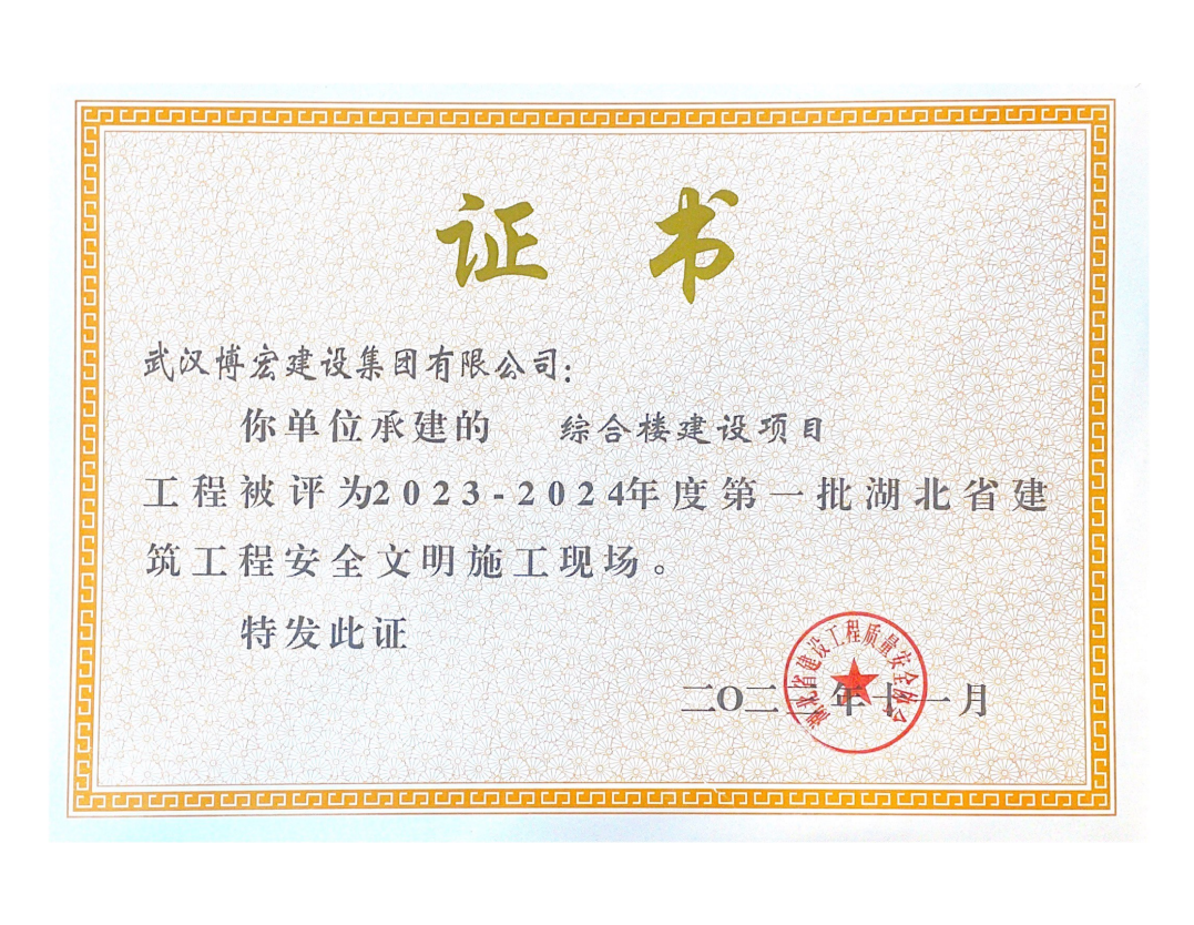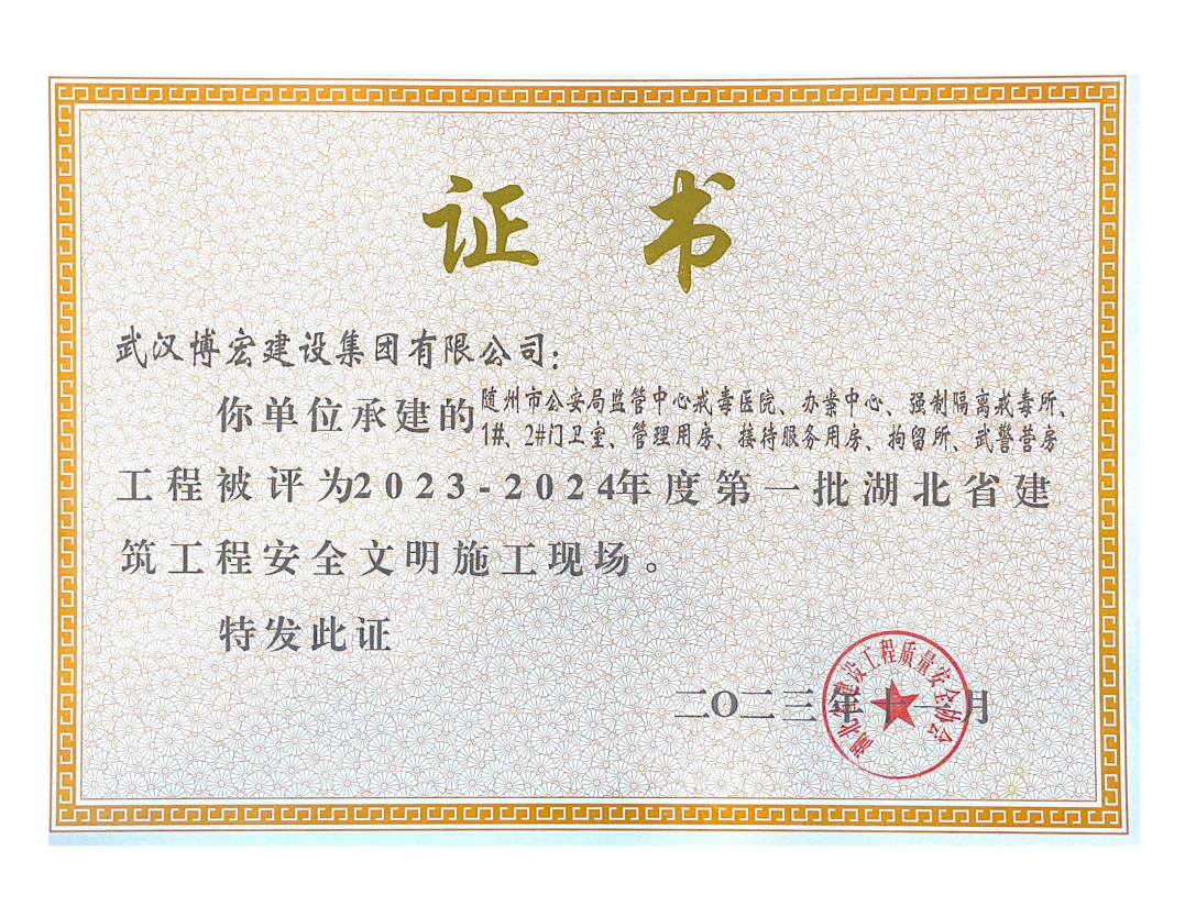 近日,湖北省建設(shè)工程質(zhì)量安全協(xié)會公布了2023-2024年度第一批湖北省建筑工程安全文明施工現(xiàn)場名單,由博宏建設(shè)集團承建的隨州市中心看守所辦公區(qū)、監(jiān)區(qū)及配電房;黃金口產(chǎn)業(yè)園商業(yè)設(shè)施、居住、公園綠地建設(shè)項目;新建工業(yè)項目(漢陽市政科研中心)(EPC)等8項工程獲評湖北省建筑工程安全文明施工現(xiàn)場。