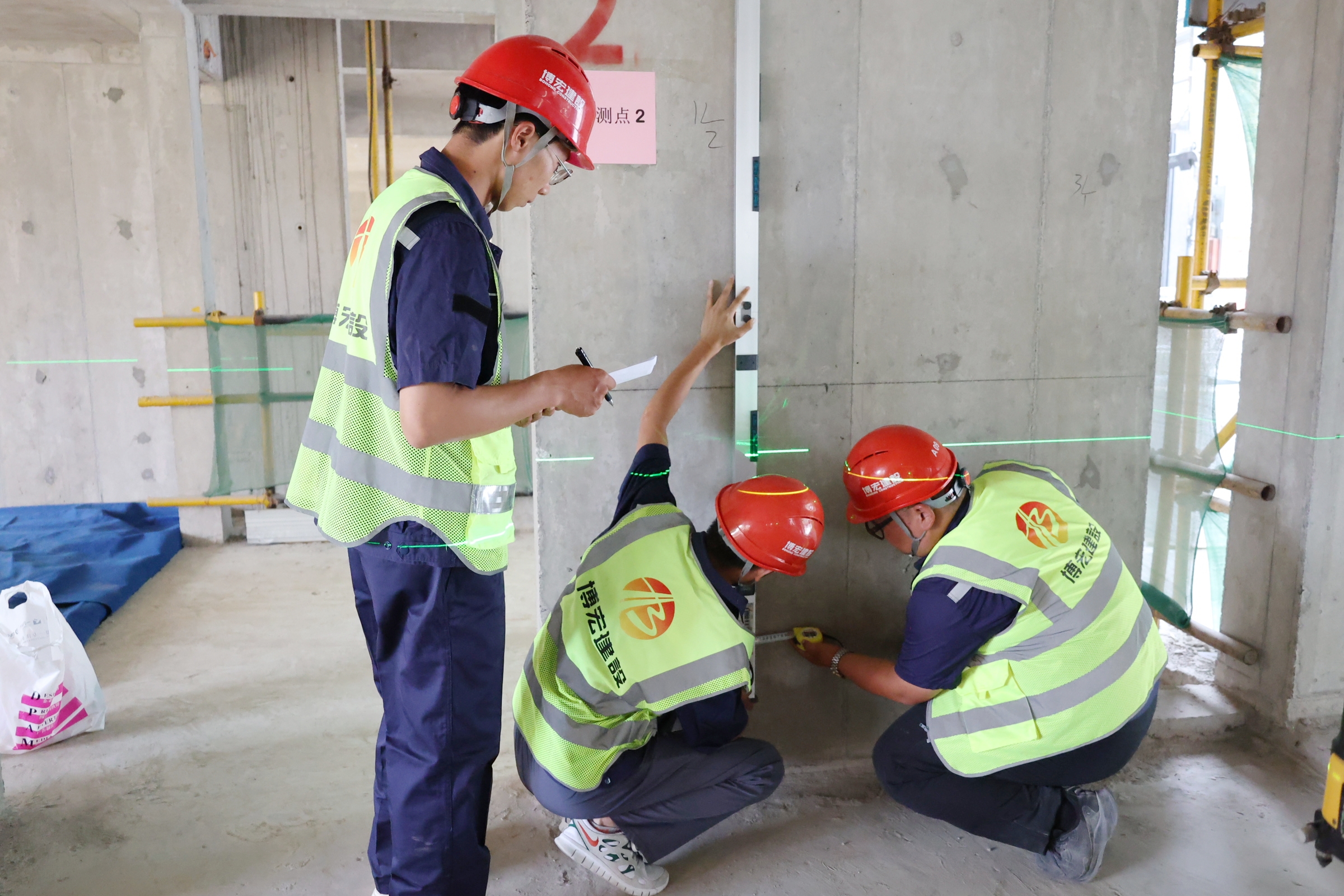 為響應(yīng)“質(zhì)量月”活動號召,增強全員質(zhì)量意識,促進公司質(zhì)量全面提升,9月26日下午,博宏建設(shè)集團2024年“質(zhì)量月”實測實量技能比武大賽在國博D12地塊項目順利舉行,博宏建設(shè)集團總經(jīng)理助理李暉,質(zhì)量管理部部長姜昊,各項目部質(zhì)檢員、施工員共計五十余人參加活動。本次活動特別邀請到漢陽市政、深圳瑞捷、匯科檢測等單位專業(yè)代表作為裁判。